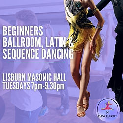 Join NI Dancesport for our weekly adult beginners Ballroom, Latin, and Sequence dance classes every Tuesday from 7pm to 9.30pm at the Lisburn Masonic Club, Belsize Road. Our fun and friendly classes are perfect for everyone, with or without a partner, and are a great way to boost your health while meeting new people. Tea & Coffee provided. Drop in / Pay as you go (no need to book) £9 per person per class